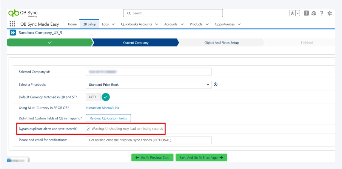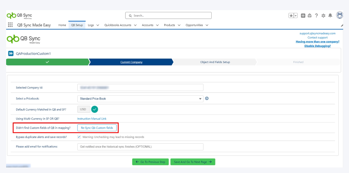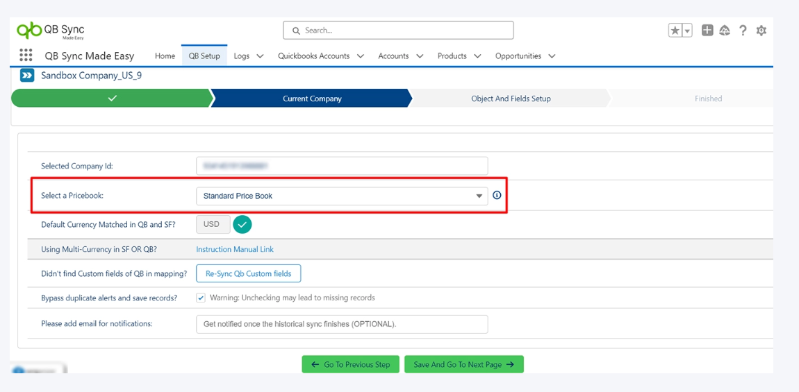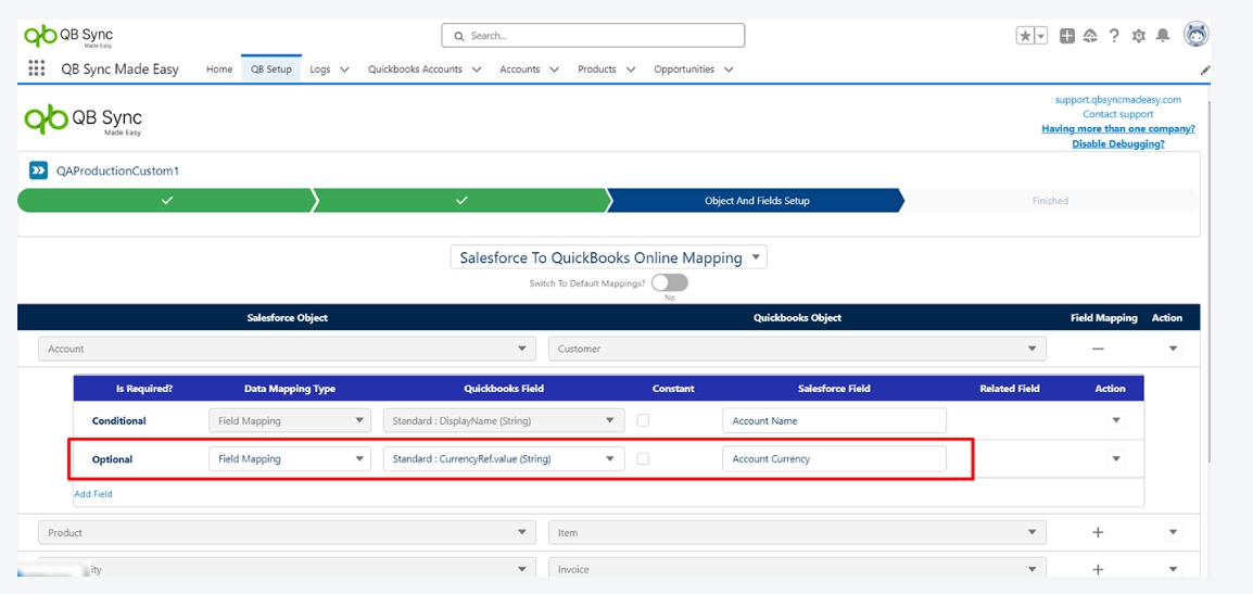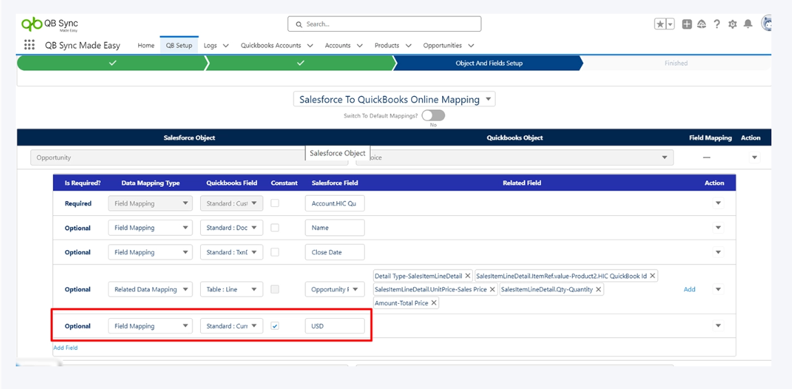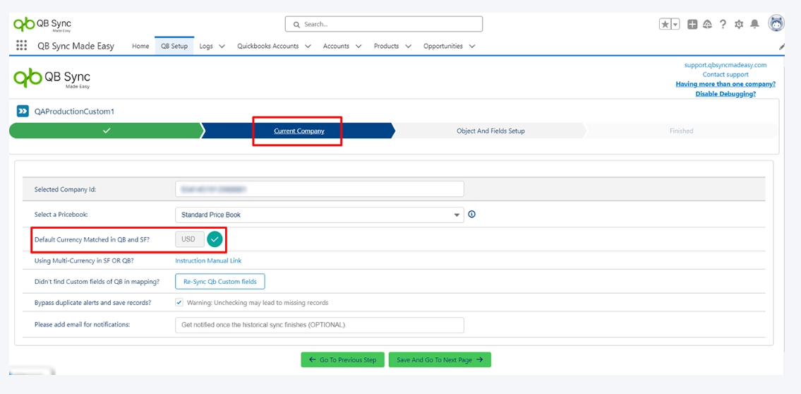 You can check if the default currencies in both Salesforce and QuickBooks match by verifying. If the default currencies match, no further configuration is required. If default currencies do not match, an error will be displayed, and you need to address the currency mismatch before proceeding, or else there may be a currency mismatch.