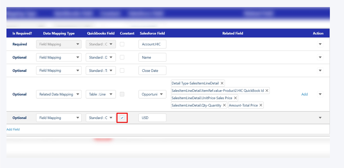If you want records created in QuickBooks from Salesforce to have a fixed currency, use the ‘currencyref.value’ field in mapping.