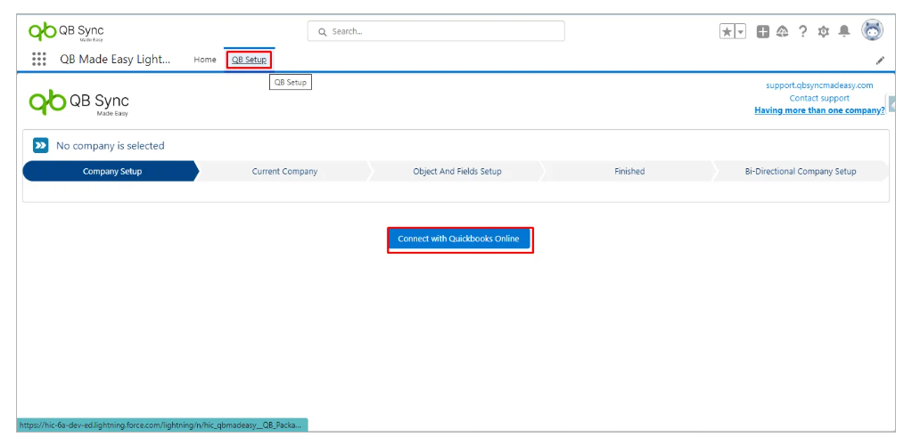 Now click on Connect with QuickBooks Online to link QuickBooks companies to Salesforce.