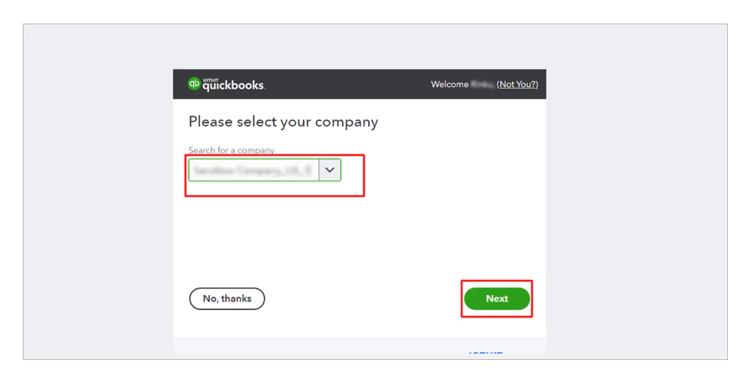 After clicking on connect, select the company and click on the next tab.