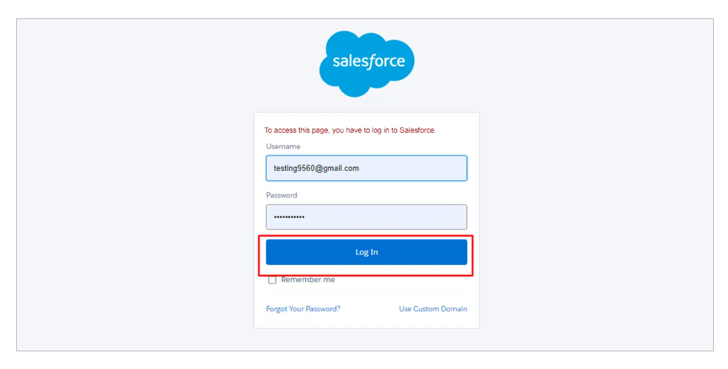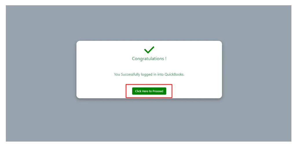 You must now log into the Salesforce account you wish to link. After logging in, you will see a message showing that the company has connected successfully. After that, you click the “Click here to proceed” button.