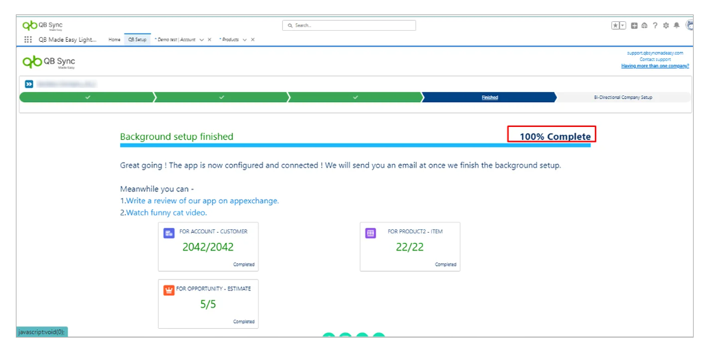 Congratulations! Your Salesforce and QuickBooks Company are now linked.