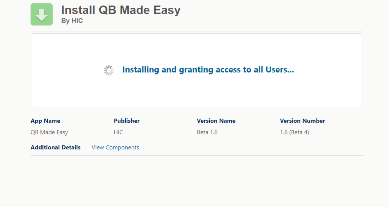 You will now see that the QB Sync Made Easy app is Installing and granting access to all users.