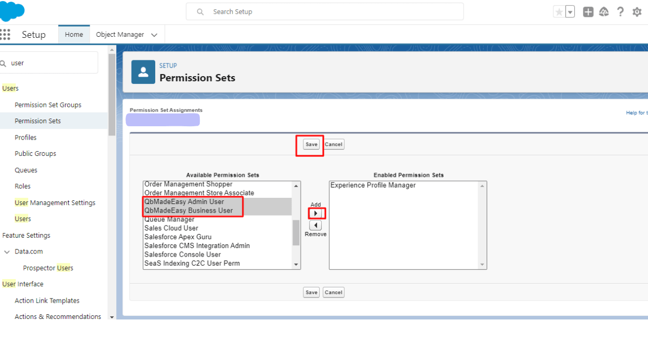 Step 6: Then, assign the Permission Sets (QB Sync Made Easy admin user & business user).