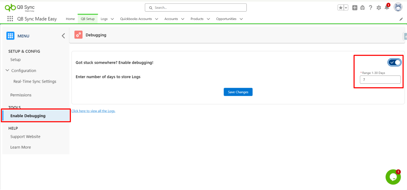 Facing any problem, you can enable the Debugging logs: