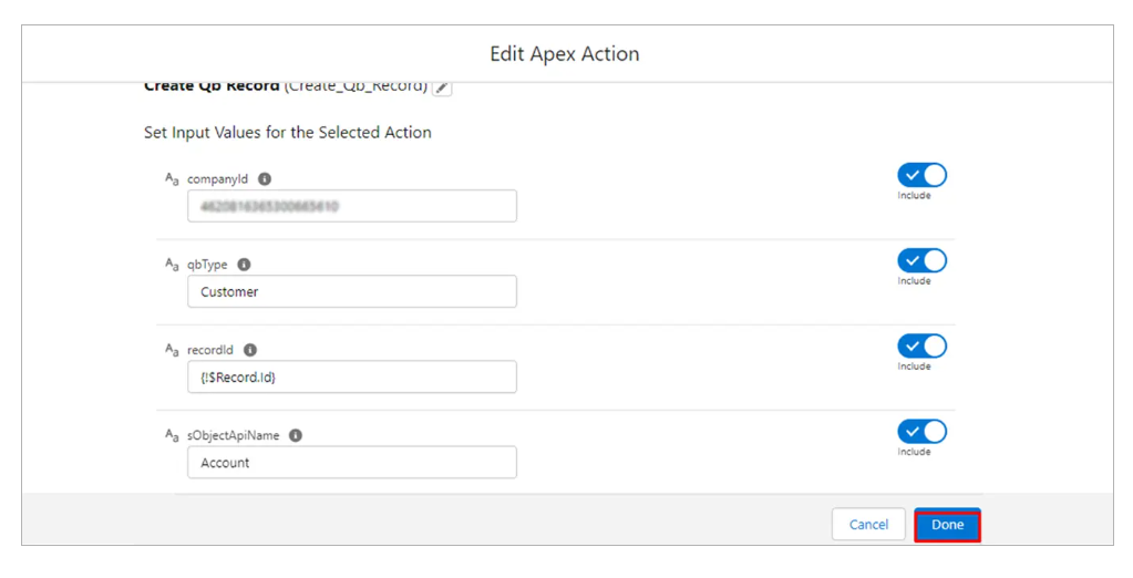- In Company ID: enter the QuickBooks company ID you want the record to sync
