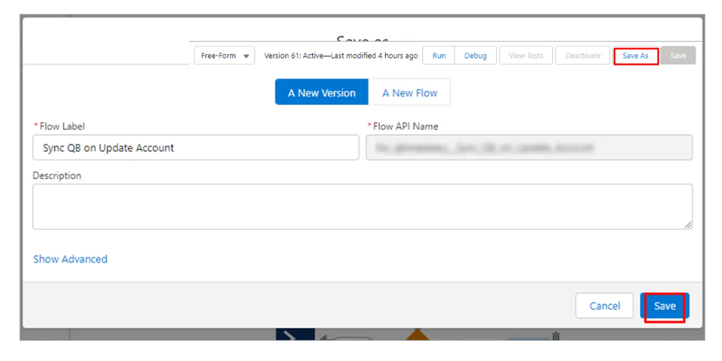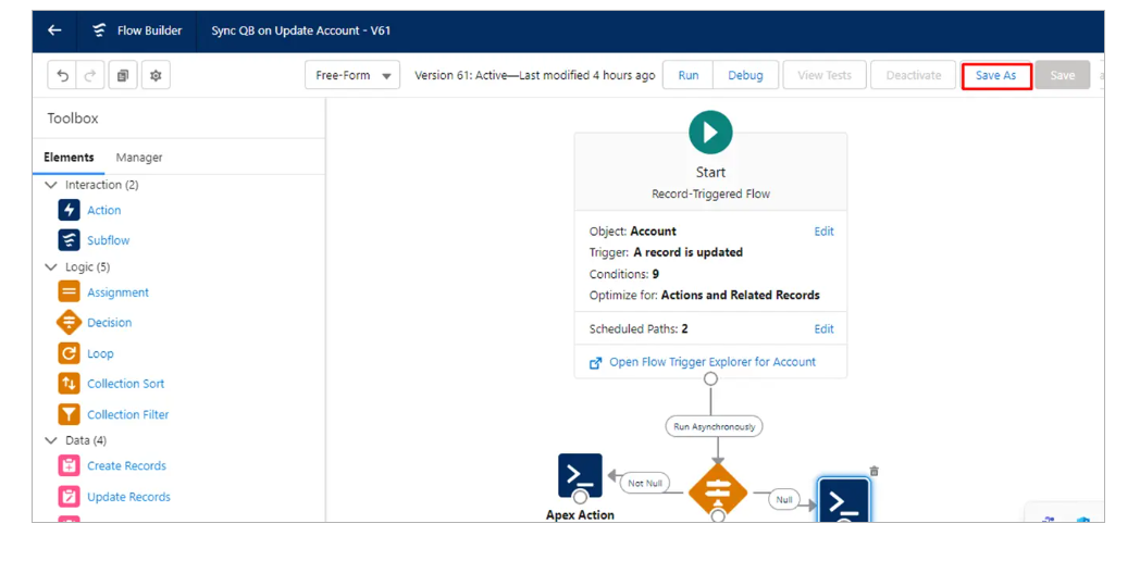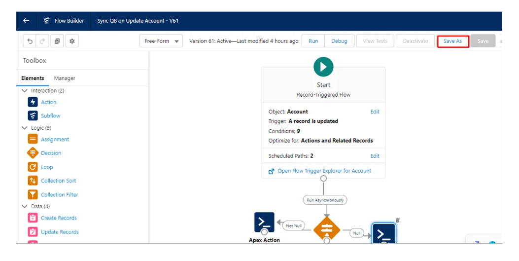 Firstly, create a flow on the Salesforce Object that you want to sync in QuickBooks.