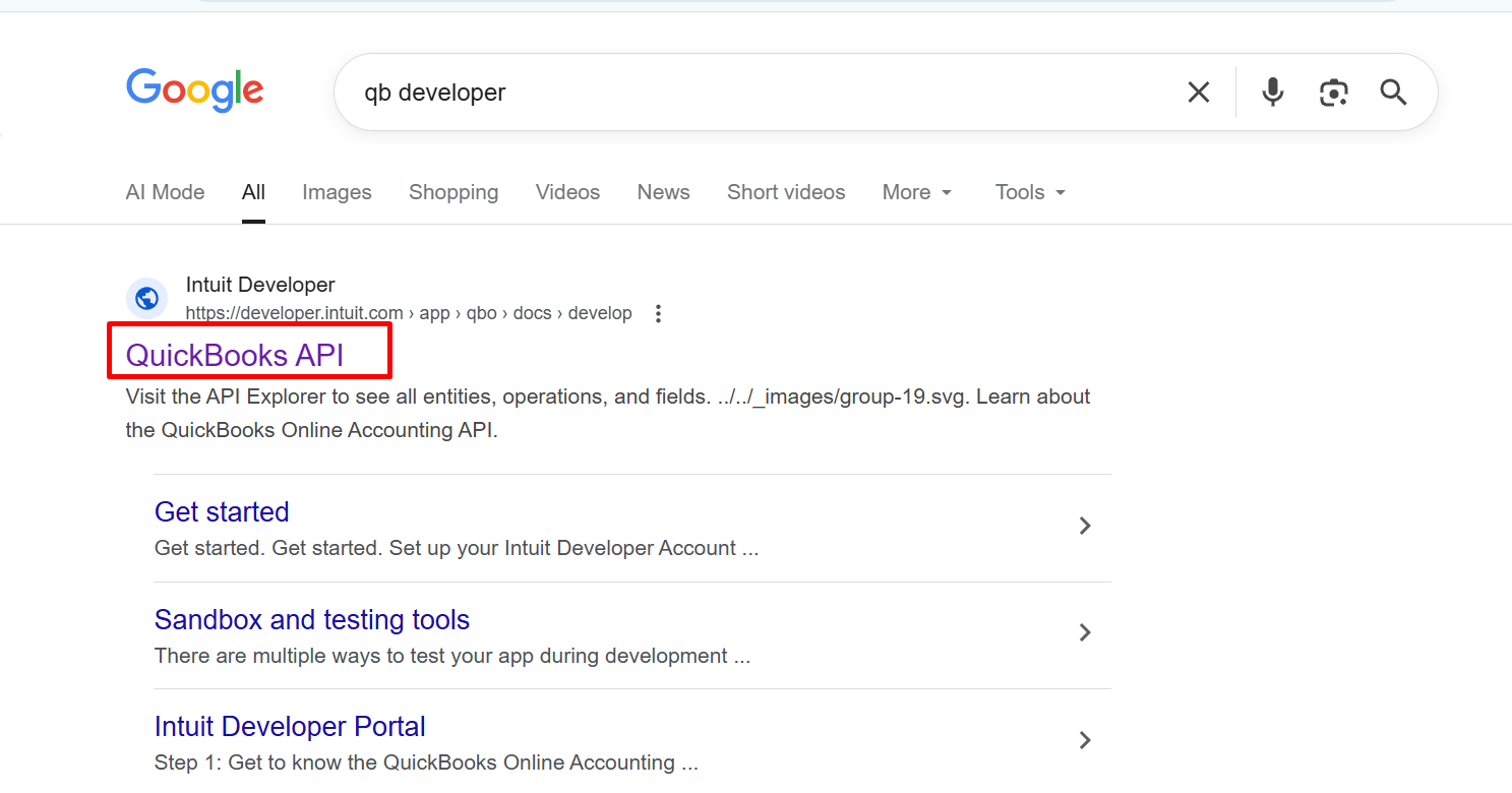 Step 1: Open the QuickBooks Intuit Developer Portal.